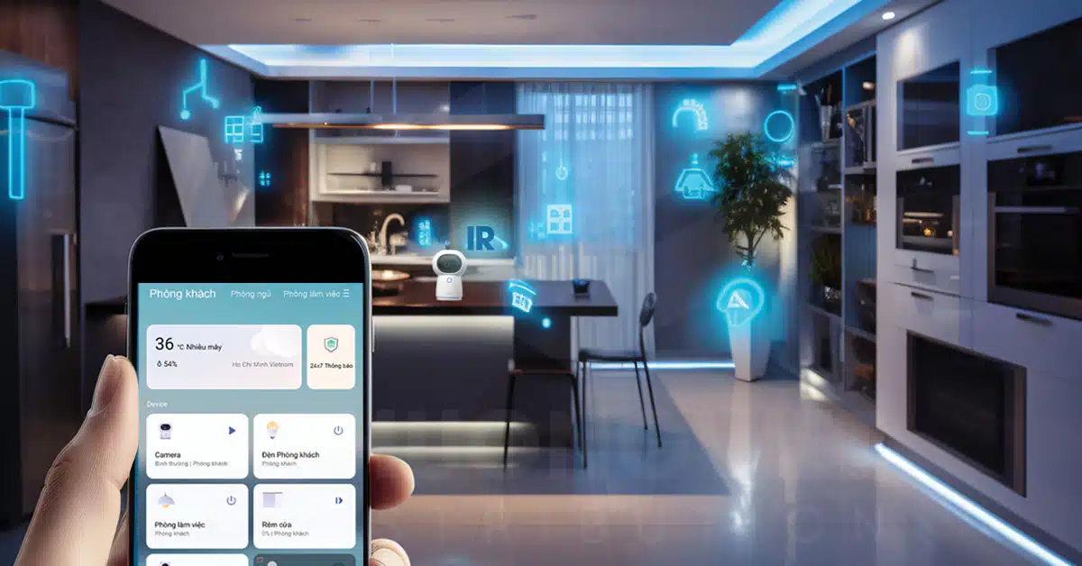 Ví dụ, bạn có thể điều khiển đèn đèn, điều hòa, máy lạnh, giảm cửa, hay cả hệ thống an ninh của ngôi nhà thông qua một ứng dụng trên điện thoại thông minh hoặc giọng nói.
