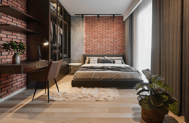 - Để lộ tường gạch mộc hoặc tường bê tông trần. Nếu không thể, hãy sử dụng giấy dán tường giả gạch hoặc sơn màu xám bê tông.