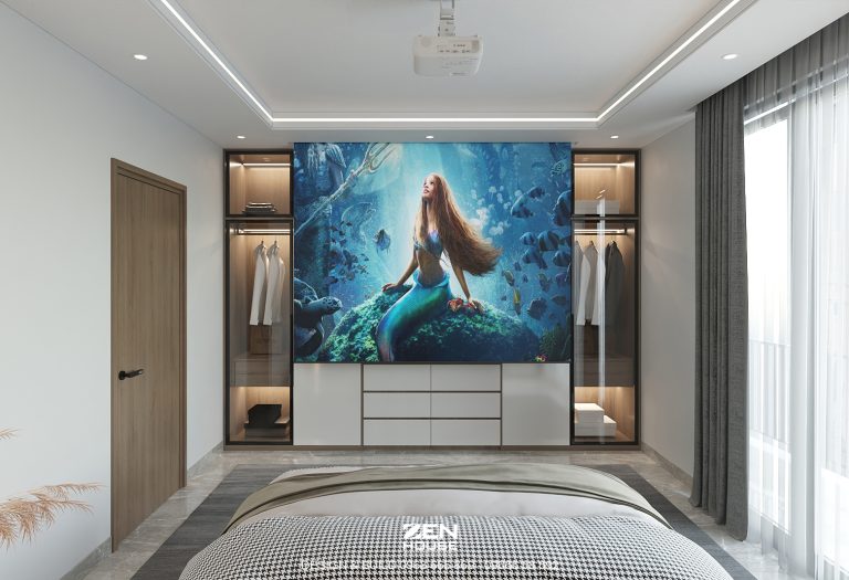 Phòng ngủ được thiết kế gần gũi với thiên nhiên thông qua hệ thống ban công rộng rãi, đó sẽ là nơi thư giãn ngắm cảnh thú vị cho gia chủ.