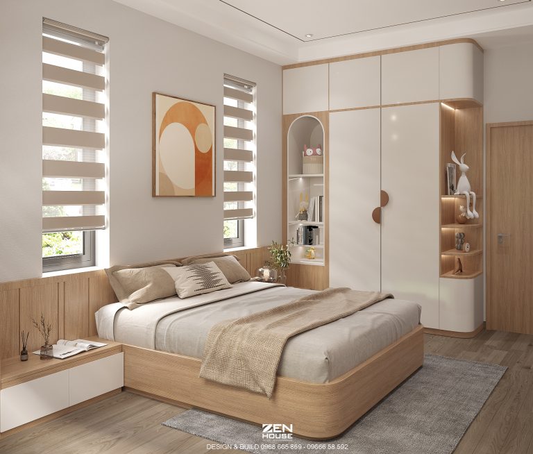 Màu sắc chung trong thiết kế của những căn phòng ngủ nhà anh Đạo đó là gam màu trắng sữa nhẹ nhàng nổi bật trên nền sàn nâu sang trọng . Bố trí không gian hài hòa, đẹp mắt tạo sự rộng rãi, thoáng đãng. Thật tuyệt vời khi được nghỉ ngơi trong những căn phòng ấn tượng ấy sau những giờ làm việc vất vả.Căn nhà ngủ thu hút nhất của biệt thự nhà anh Đạo đó là phòng ngủ Master. Đây là căn phòng ngủ chính được ưu tiên cả về diện tích lẫn chi phí.