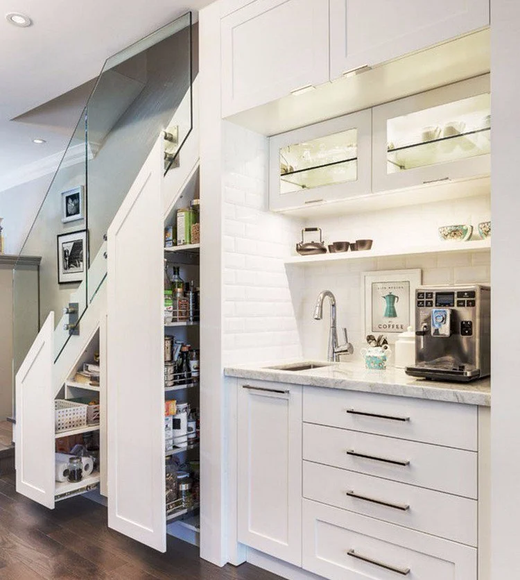 Tủ bếp chữ I có thể đặt ở mọi vị trí, ngay cả ở dưới cầu thang